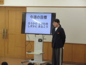 児童朝会で、5年生が自然学校に向けての決意表明をしました。
