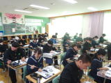 <全国学力・学習状況調査> 全国学力・学習調査が3年生対象に実施されました。本年度は、15日に理科と生活状況調査による質問等が行われ、本日、国語と数学の学力調査が行われました。 |