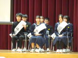 【生徒会立会い演説会】 和田山中学校新生徒会の発足に向けて、立候補者による立会い演説会が行われました。会長候補に3名、副会長男子に1名、女子に2名の立候補者の演説後、各クラスで投票が行われました。 |