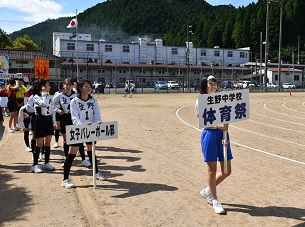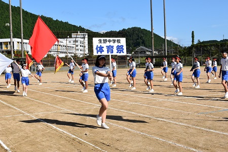 コロナに負けるな! 〜 「気炎万丈」 全てを尽くして燃え上がれ 〜 選手宣誓 ラジオ体操 競走競技(女子100m 男子150m) ザ・魂入れ<全校女子> ナイスキャッチ!<全校男子> 紅白対抗リレー(2分走) 部活動行進 生中マスゲーム2020 全力3年生! 〜生中魂ここにあり〜