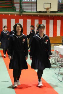 【卒業生入場】 【開式の辞】 【卒業証書授与】 【学校長式辞】 【教育委員会告辞】 【卒業記念品贈呈】 【送辞】 【答辞】 【式歌】【校歌】 【保護者代表あいさつ】 【退場】 【最後のHR】 【3年生見送り】