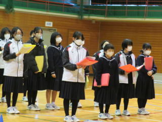 | ◇1月27日(金)<入学説明会【6年生】> ・本日、授業参観(数学・理科・技術)を見学を行い、その後、4階の視聴覚室にて親子で入学説明会に参加 しました。そこでは、生徒会新執行部から中学校生活についての説明もありました。 最後に、制服・体操服等の採寸を行い、春が待ち遠しい笑顔が見られました。 ![]() ![]() ![]() ![]() ![]() ![]() ![]() ![]() ![]() ◇1月26日(木)<令和5年度 新生徒会役員 任命式及び引継式> ※詳細は生徒会ページを参照。 ![]() ![]() ![]() ◇1月20日(金)<生徒会役員選挙 立会演説会【全校生】> ※詳細は生徒会ページを参照。 ![]() ![]() ![]() ◇1月17日(火)<第2回防災訓練及び1.17追悼集会【全校生】> ・本年度2回目となる避難訓練を地震を想定して実施しました。合わせて、28年前におきた阪神・淡路大 震災の追悼集会も行いました。 ![]() ![]() ![]() ![]() ![]() ![]() ◇1月17日(火)<生徒会役員選挙運動開始【立候補者】> ・令和5年度生野中学校生徒会役員に立候補者による選挙運動がはじまりました。 【立候補者】 ○生徒会長:中田 悠稀(男子) ○副会長 :大川 遼(男子)、宮武 蓮斗(男子)、園田 彩加里(女子) ![]() ![]() ![]() ◇1月13日(金)<全校球技大会【全校生】(生徒会主催)> ※詳細は生徒会ページを参照。 ・2学期の12月21日に予定しておりました球技大会が延期となり、本日、生徒会主催で実施しました。 ![]() ![]() ![]() ◇1月10日(火)<3学期始業式【全校生】> ・令和4年度、3学期始業式を4F視聴覚室にて挙行しました。 ![]() ![]() ![]() ◇1月6日(金)<補充学習【3年生】> ・2023年、新しい年を迎えました。3年生にとっては受験の時期が迫ってきました。冬休みも残り僅かと なった中、補充学習が実施されました。 ![]() ![]() ![]() |