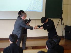 また、今回は昨年度の卒業生である松尾圭悟さんから進学先(陸上自衛隊高等工科学校)