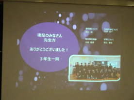 3年間の中学校生活を終え、もうすぐ卒業する3年生に対し、日頃の感謝の気持ちを込めた会を開く。