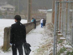 野書院周辺・マインホール周辺の3カ所のゴミ拾いや清掃を行いました。雪がちらつき寒い中
