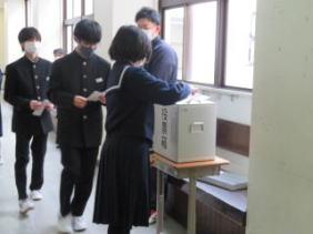 ・次期、生徒会役員を決める立会演説会が行われました。最初に、選挙管理委員会からの