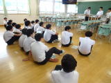 <歯科指導(1年生)> 朝来市歯科衛生士2名派遣による歯科指導を4日と11日と2回に分けて、1年生を対象に実施しました。歯の健康について学び、歯肉チェックや染め出しと磨き方の実習も行いました。 |