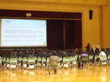 <交通安全教室(1年生)> 1年生を対象に交通安全教室を開催しました。南但馬警察署 交通課の中井警部補から交通マナーについて、映像を見ながら分かりやすくお話していただきました。 |